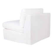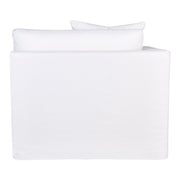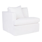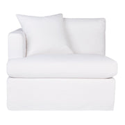 White linen slip cover left arm facing seat. Constructed from a solid hardwood frame, the comfortable cushion seat is feather and foam fill with inner spring suspension and a removable cover. Suits most decor from Hamptons, coastal and contemporary living. Slip cover with tailored sides are easily removed for cleaning. Includes a matching scatter cushion. Create your own style modular by adding pieces of the Birkshire range. Professional dry cleaning services recommended. Do not tumble dry.