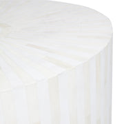 With tonal beauty and luscious curves, the Makayla bone inlay side table is a versatile piece that adds unique character to your interior. Handcrafted by expert artisans, the delicate bone inlay forms an intricate pattern that brings subtle interest and accent to your bespoke living space or bedroom. Generously proportioned the Makayla side table floats above a plinth, creating a visual sense of air. Available in Natural or Black