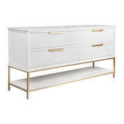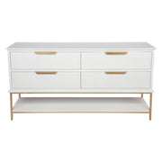 Introducing the Aimee 4 drawer chest, meticulously crafted with a perfectly proportioned design and a touch of modern glamour. Its four fluted drawer fronts and streamlined profile, accentuated by a base line shelf, create an ethereal floating effect within your space. The chest is adorned with contemporary gold metal hardware and an iron frame, providing a striking contrast to the chic satin black or stylish satin white painted finish, offering versatility to match various interior styles. The Aimee range embodies classic contemporary design, ensuring it seamlessly integrates into any setting while exuding modern sophistication that endures over time. Choose from the sleek black or pristine white options to elevate your space with timeless elegance.
