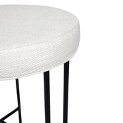 Black or Natural linen upholstered kitchen stool with an elegant black design iron frame and foot rest