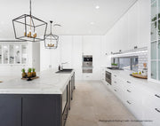 In a variation of traditional forms, the Le Mans collection inverts a characteristic tapered lantern shape for a fresh and clean look that remains true to its classic conceptualisation. Crafted from a square profiled, iron frame with unobstructed illumination, the crisp lined frame creates an open architecture for the lights to suspend within. Also available in Large size. Both sizes require 5 x E27 - Edison Screw - max 40w - Smart Bulb Compatible (bulb/s not included)