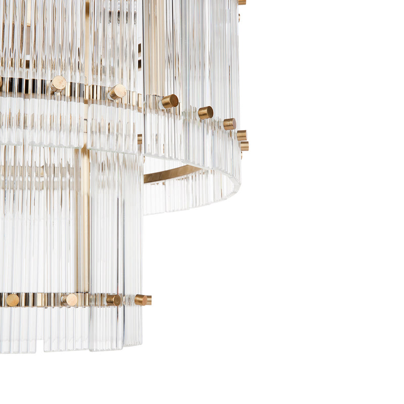 Slender and glamorous the Paloma collection evokes glamour of 1960s Italian lighting, bringing drama to an elegant urban space. Arranged on a sleek metal frame with fluted glass panels, providing a dramatic play of light and softly diffused glow